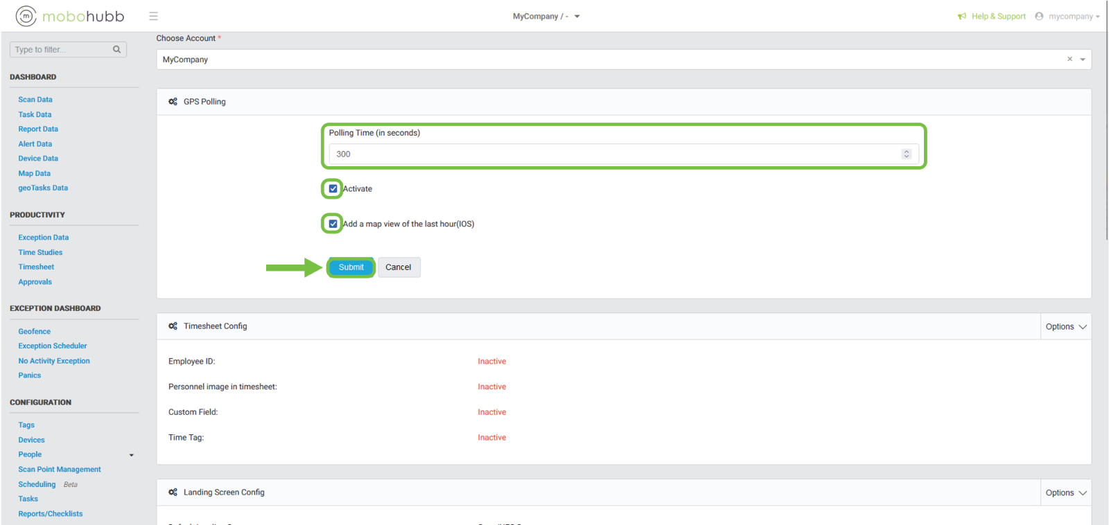 We can also “Activate” or “Deactivate” the GPS Polling option by clicking on the Checkbox.