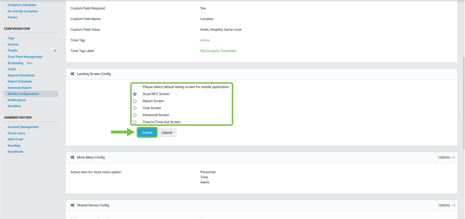 Then we click on the blue "Submit" button to save the configuration.