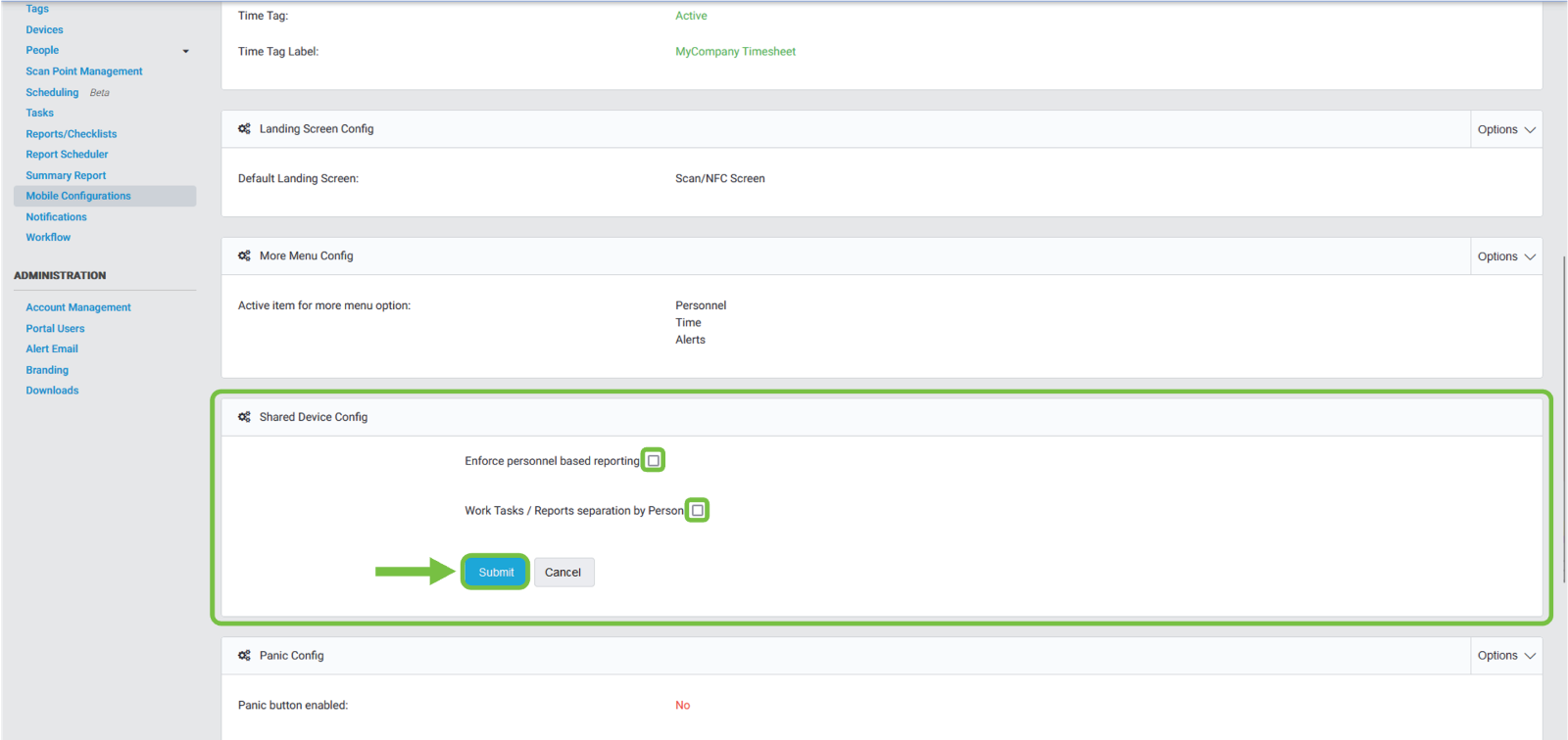 - "Enforce personnel-based reporting": we can “Activate” this option by clicking on the checkbox or keep it deactivated by leaving the checkbox blank.