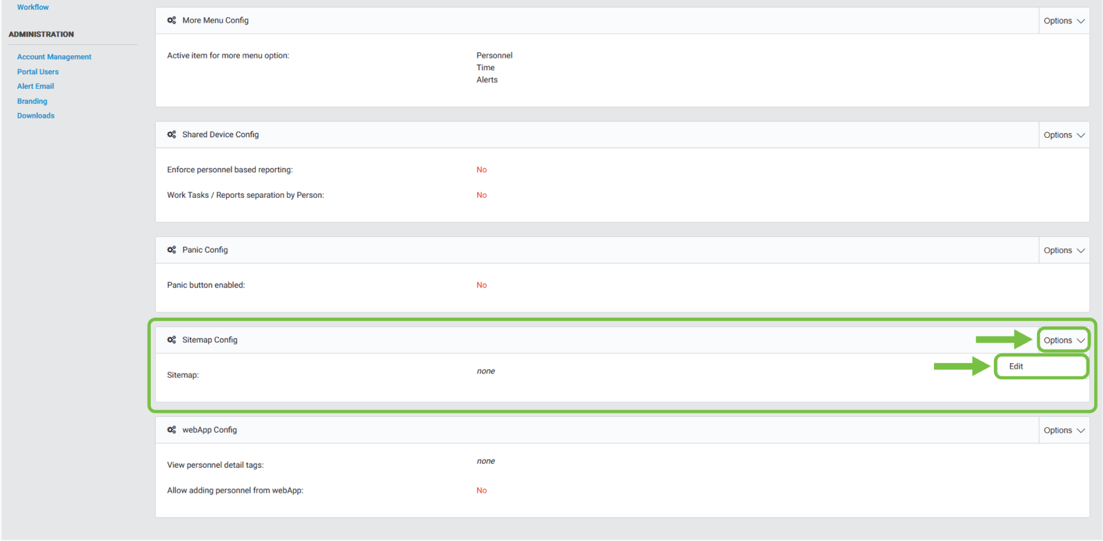 We will then navigate to the “Sitemap Config” section, then click on the “Options” dropdown button. An option will be displayed, and we will click “Edit”.