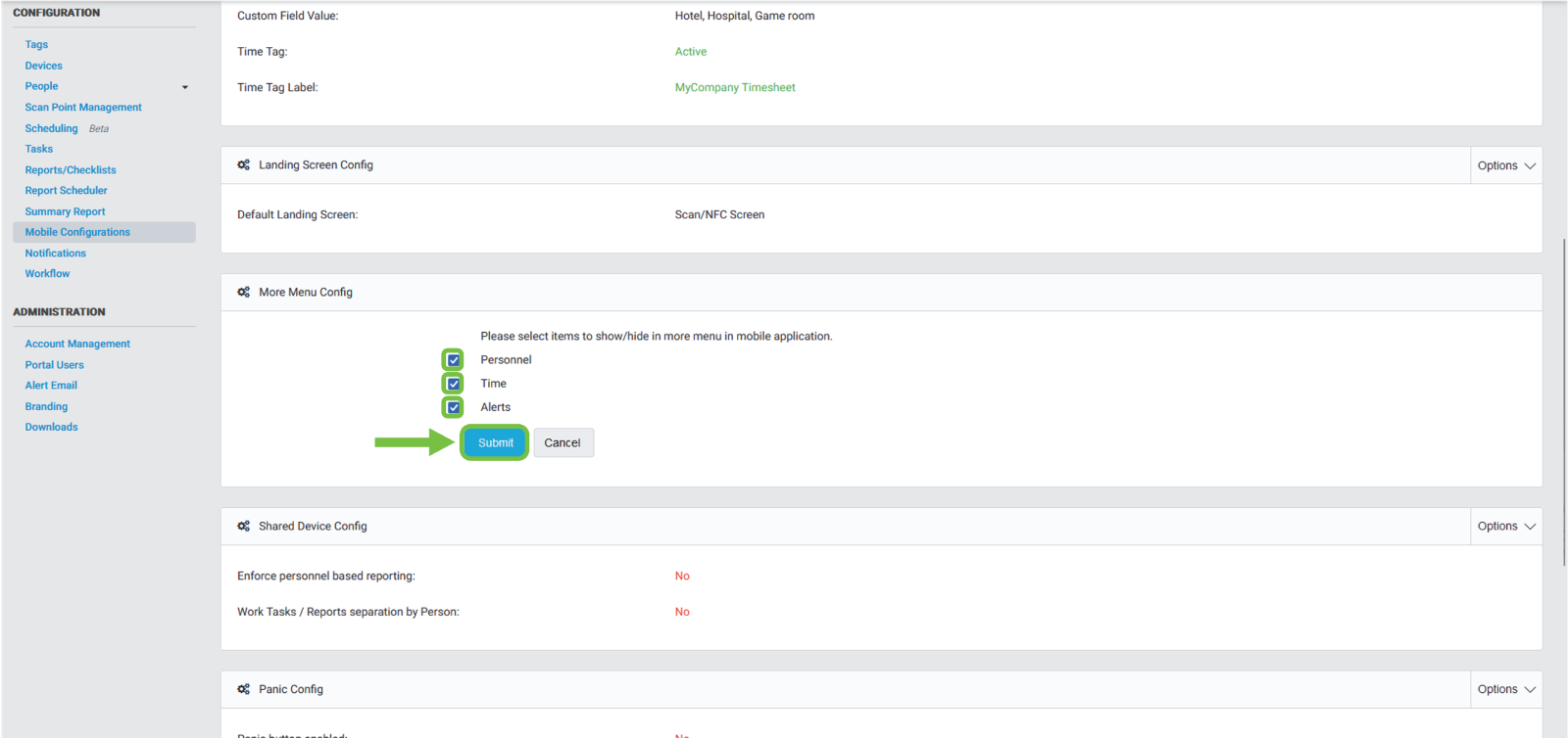 Navigate to this panel and go to the menu on the left side of your screen, then select the “Mobile Configurations” option.