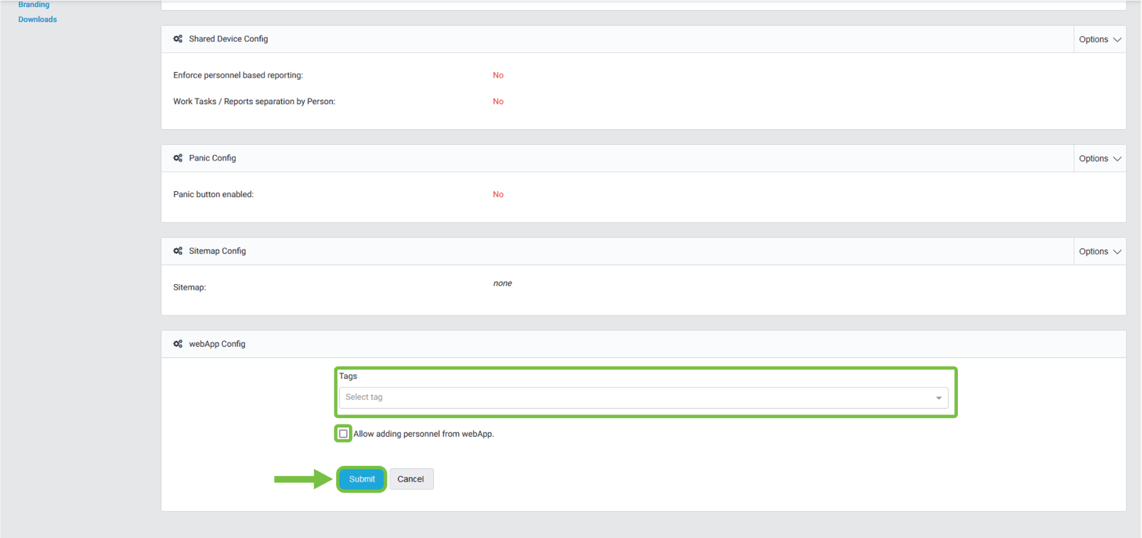 To activate the "Allow adding personnel from WebApp" option, we must click on the checkbox.