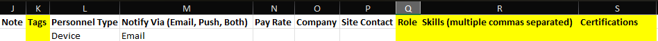 - Skills (multiple commas separated): Skill of the person (Optional). It can be empty, but if a value is set, it must first exist in the target account.