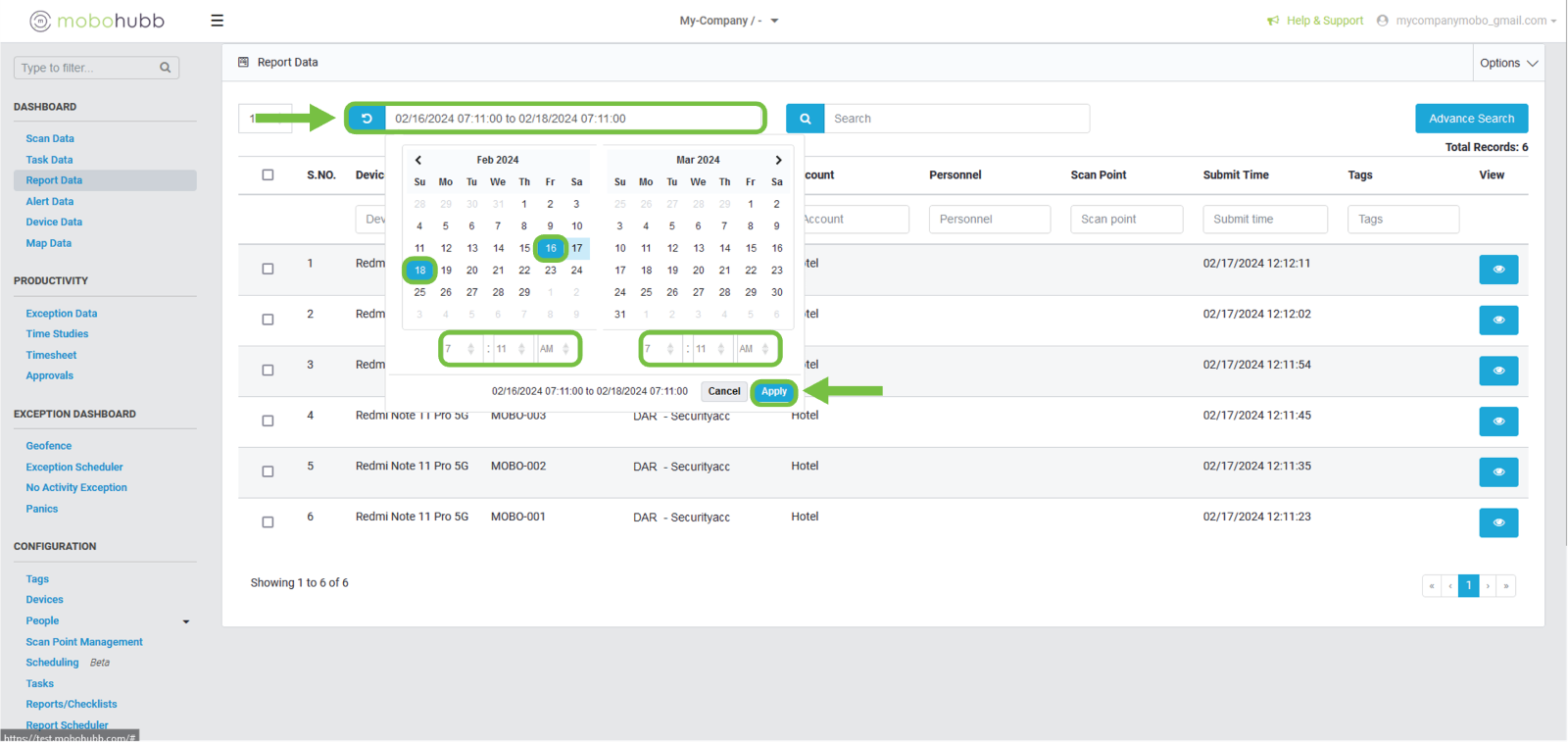 - Personnel: to filter using the name of the person who made the report.