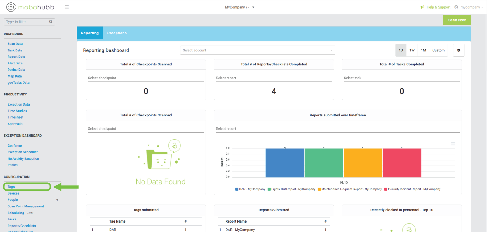 - Category: to filter by the following categories: Normal, Scan, Task, Report/Checklist, Device, Personnel or Timesheet.