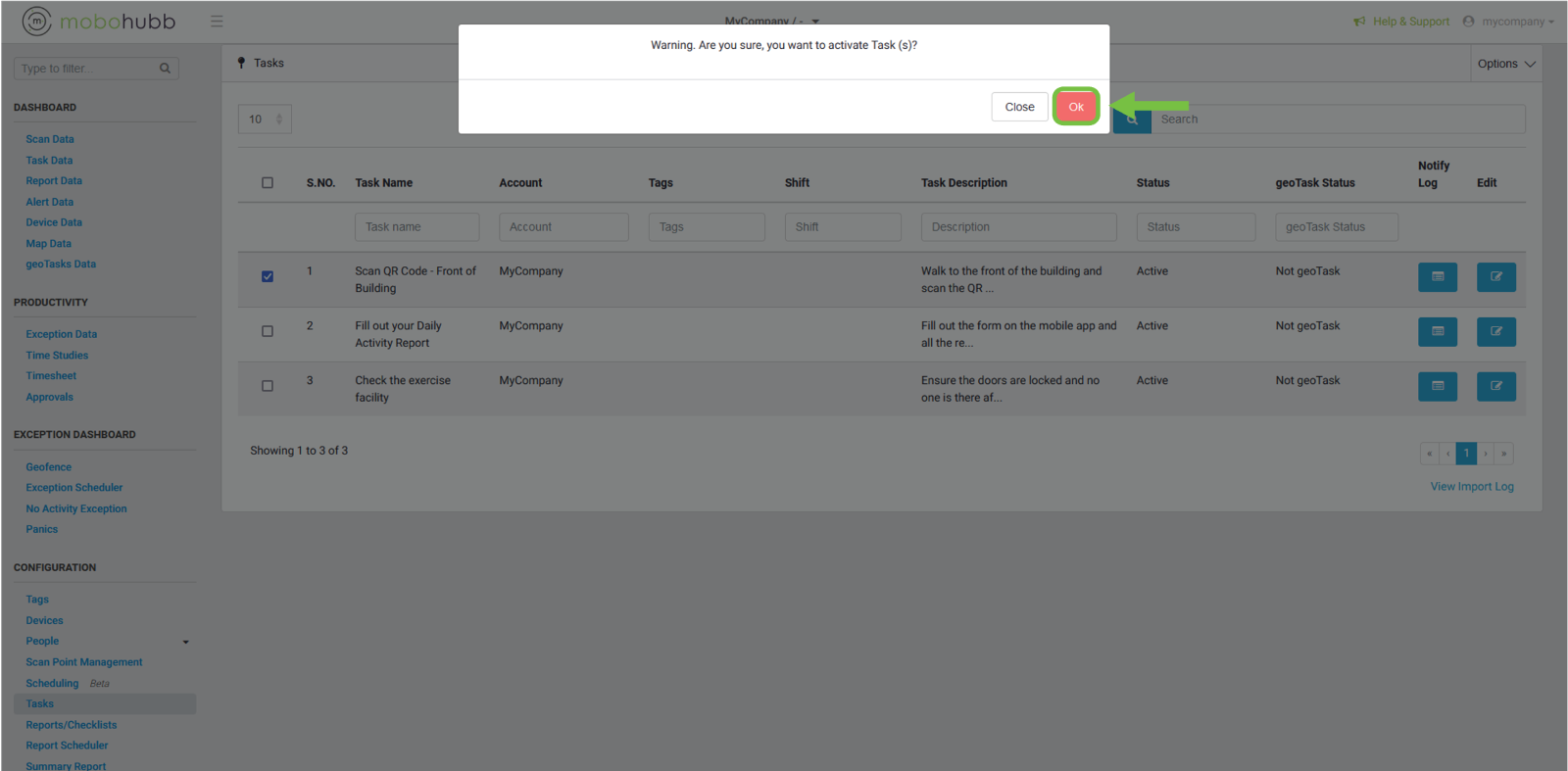 After identifying the task that we want to “Activate” or “Deactivate”, we click on the checkbox.