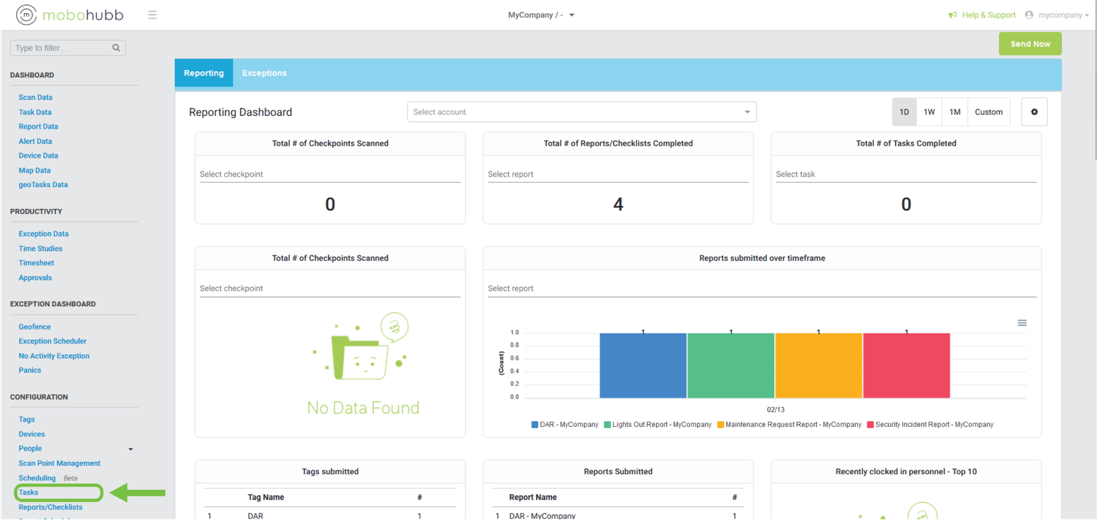 Navigate to this panel and go to the menu on the left side of your screen, then select the “Task” option.
