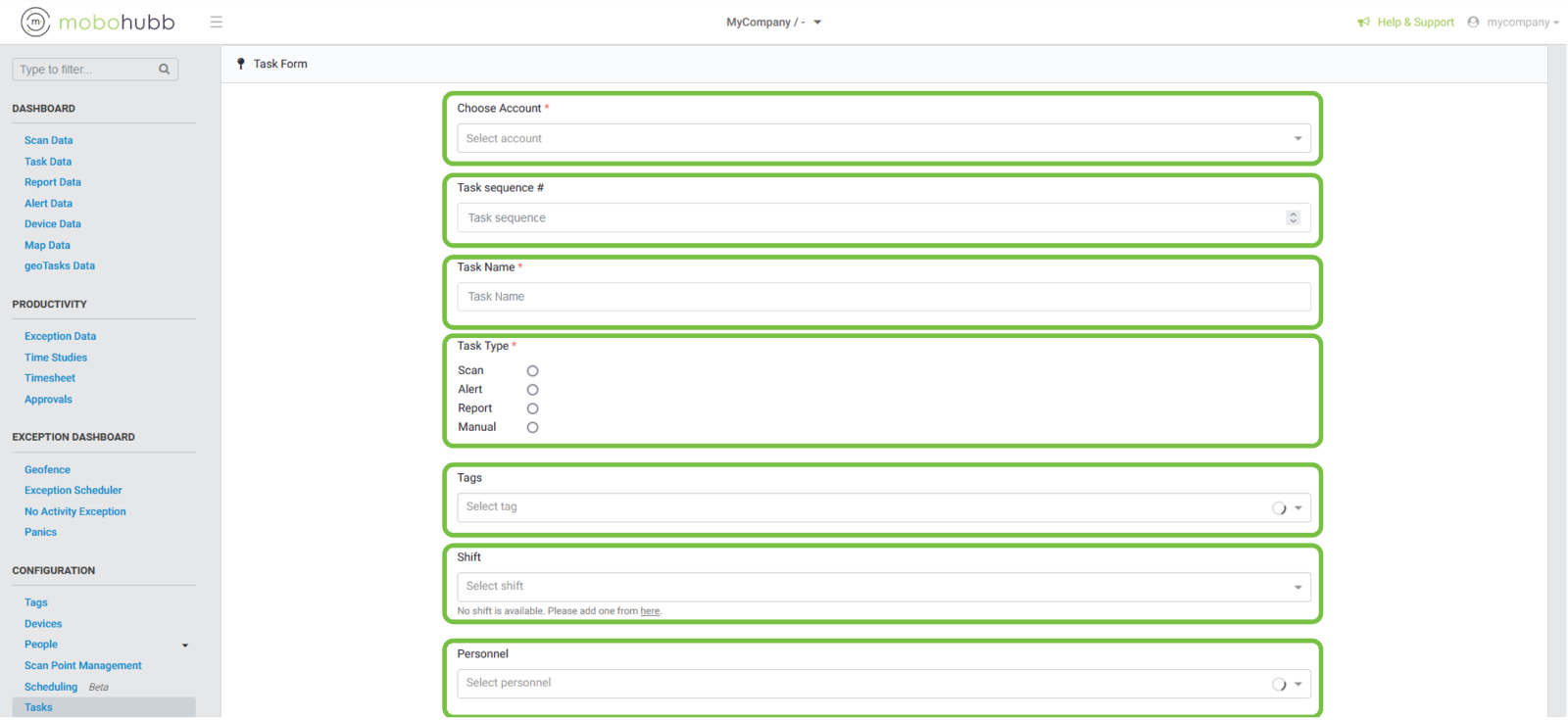 - "Scan" If this is selected, you must first scan a QR code and then mark the task as completed.