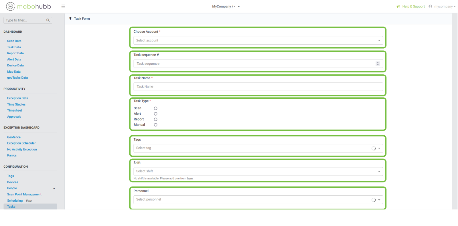 Navigate to this panel and go to the menu on the left side of your screen, then select the “Task” option.