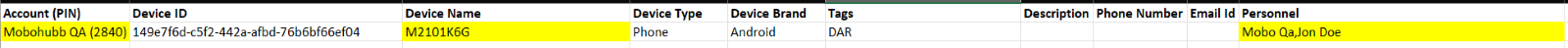 - Personnel: The personnel assigned to the device in the account; if there are multiples, they will be separated by commas.