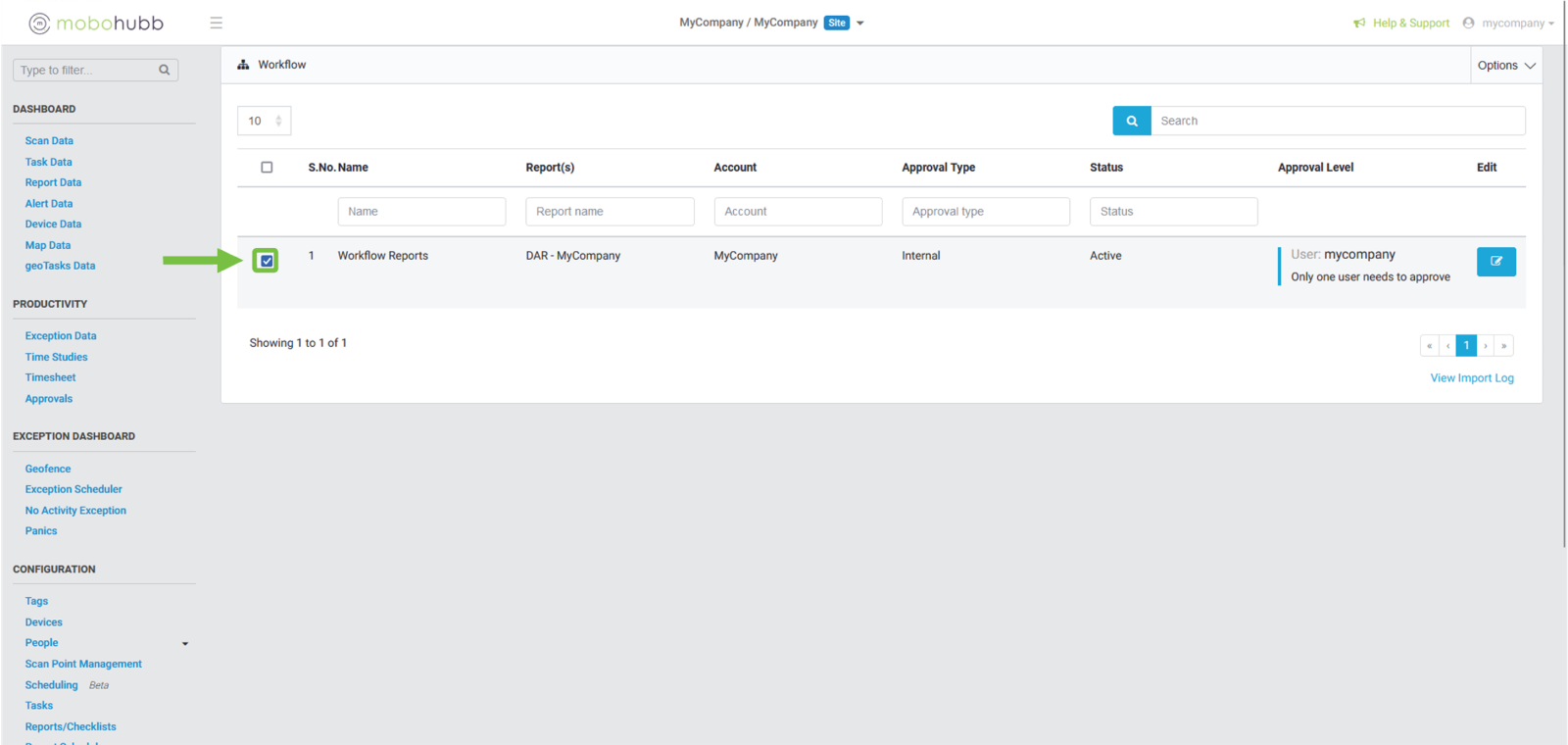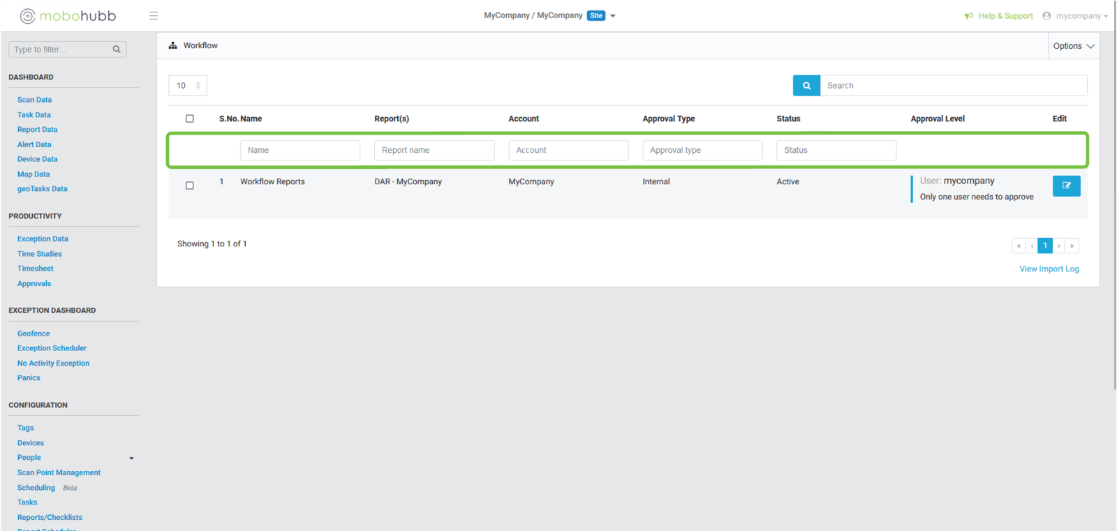 - Report(s): You can filter using the name of the report configured in the workflow.