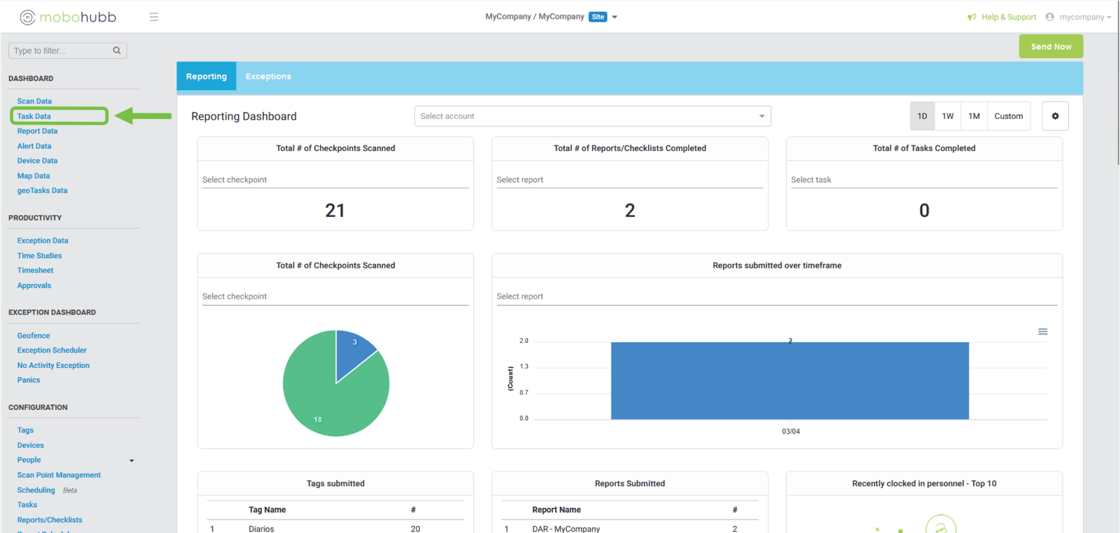 Navigate to this panel and go to the menu on the left side of your screen, then select the “task Data” option.
