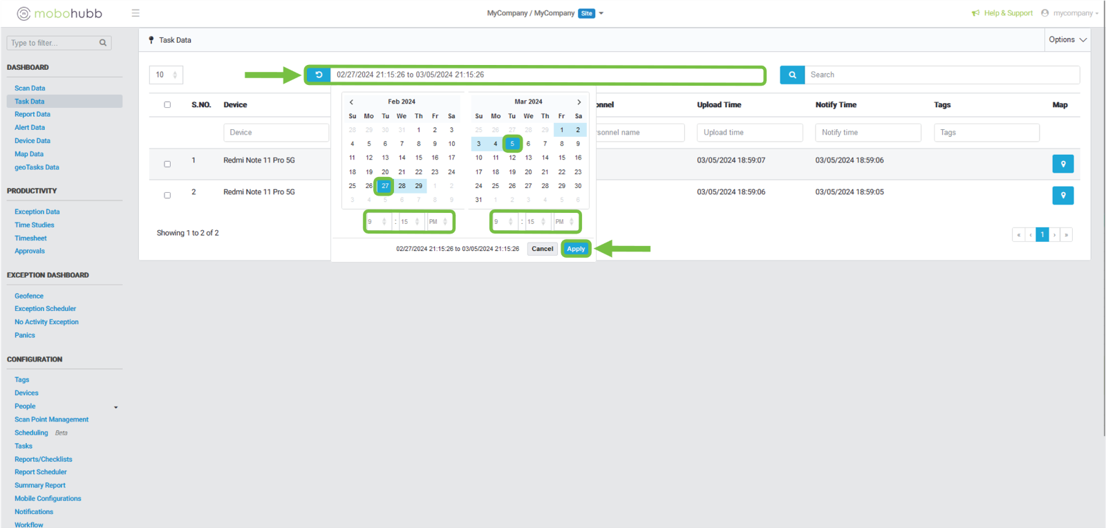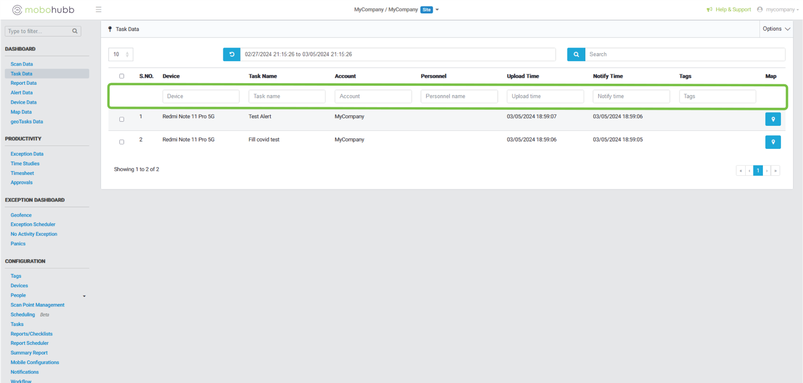 - Upload Time: filter using the date and time the task was uploaded.