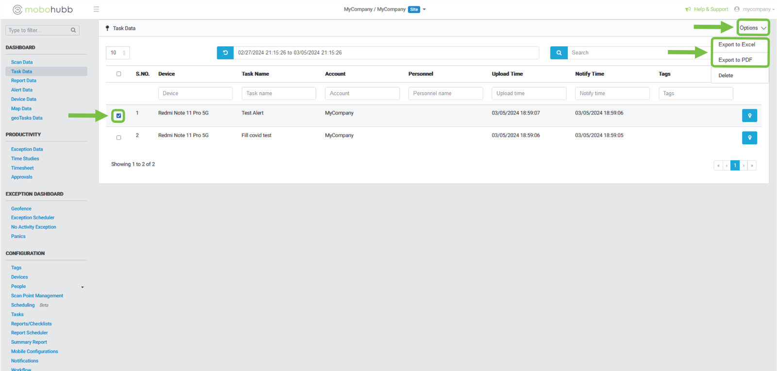 How to Export Task Data