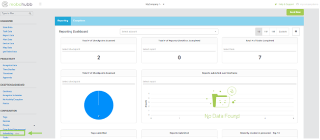 Navigate to the scheduling option located within the configuration panel on the left-hand side of the platform.