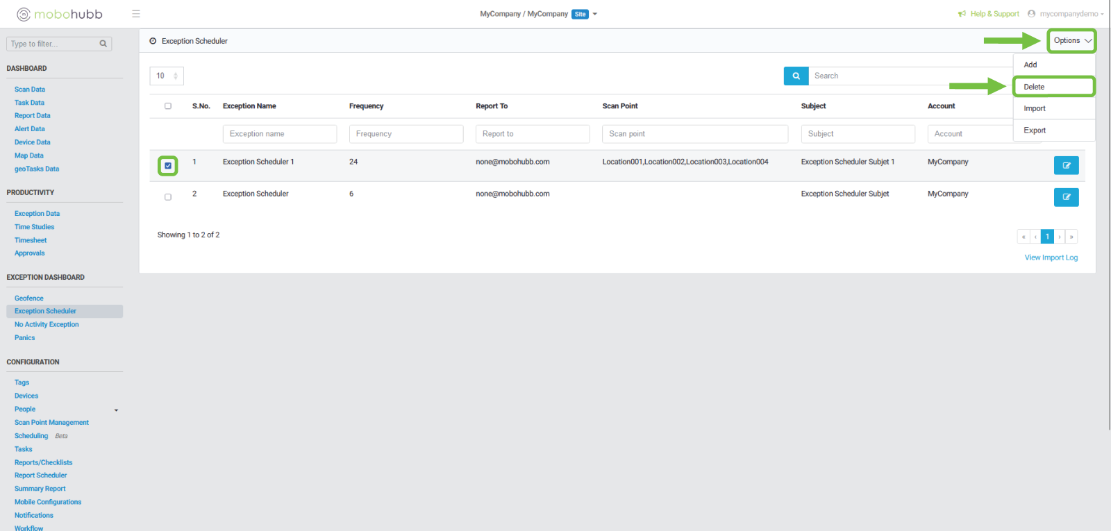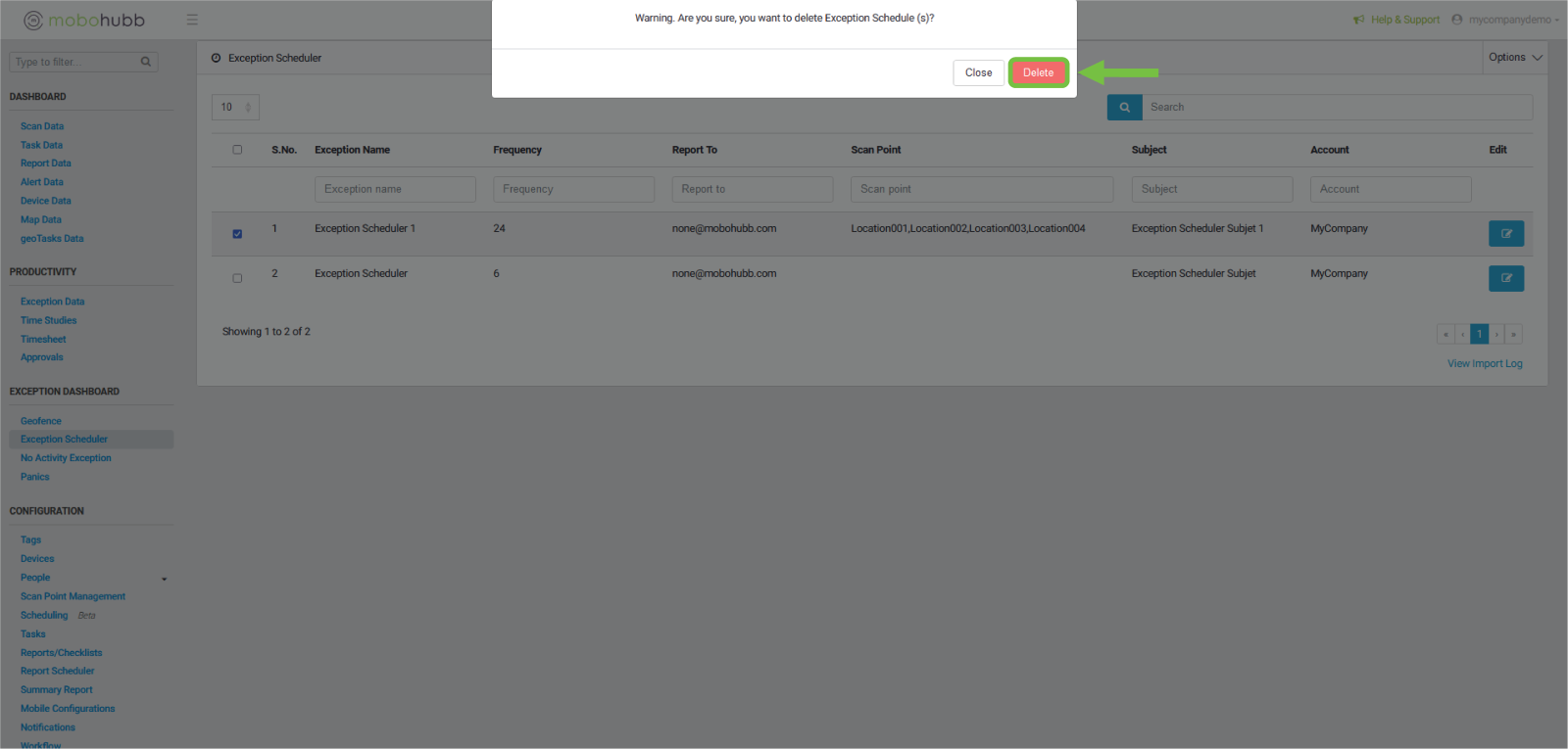 How to Delete Exception Scheduler