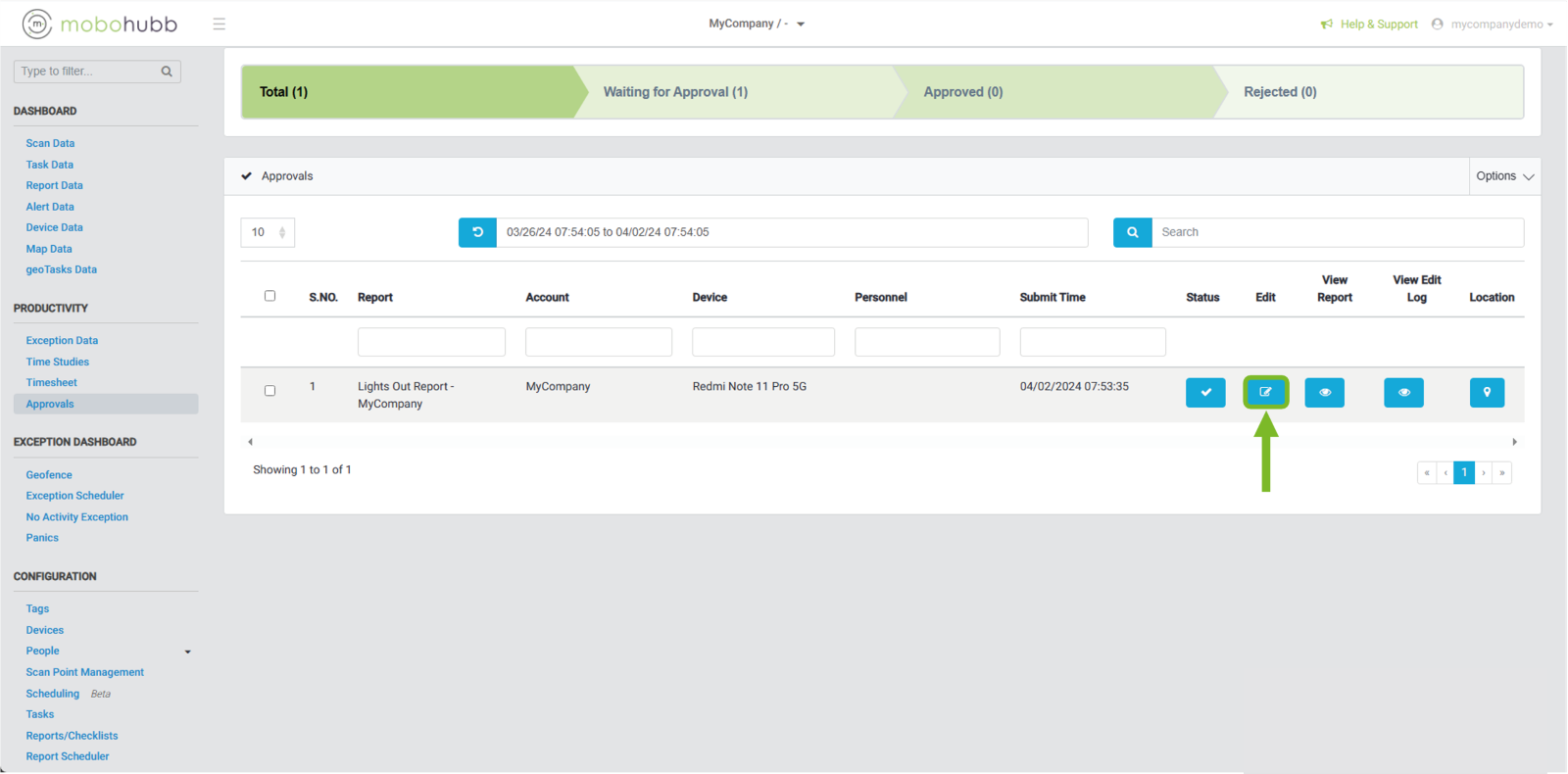 After identifying the approval that we want to edit, we click on the edit icon.