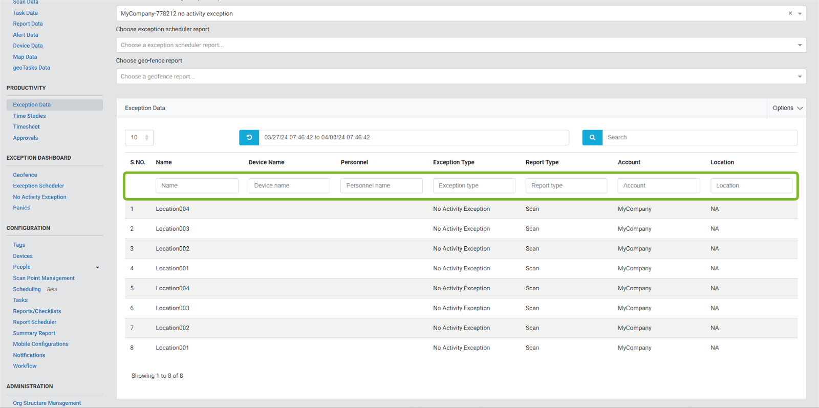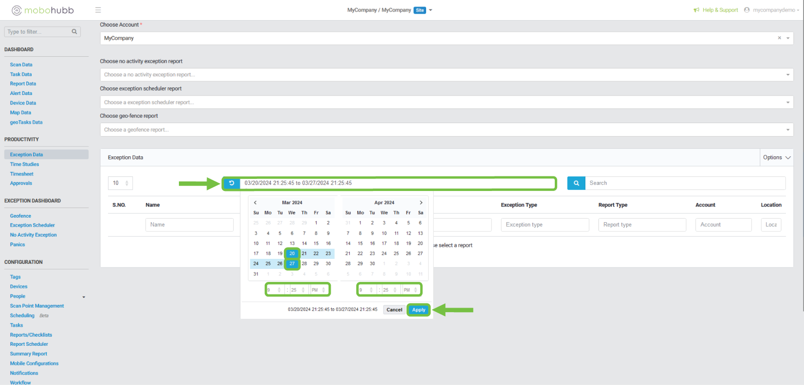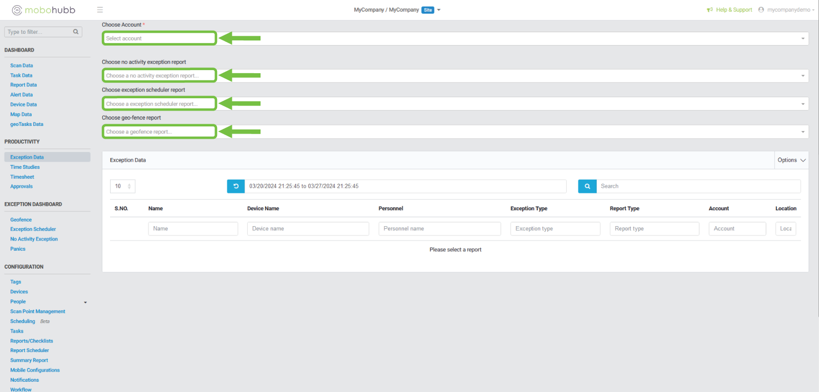 After clicking "Apply", you will find a series of boxes that you can use to filter and find exception data that you want to export.
