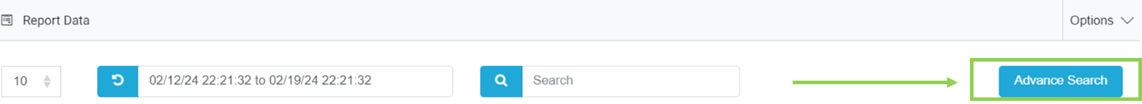 According to the permissions that you have in the account, you can also have access to the "Advanced Search" button, to select more detailed information, such as account (in case that you have more accounts below one organization), the name of the report.