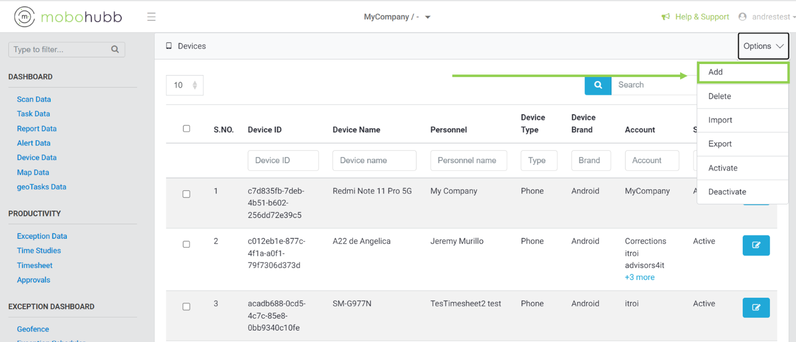 In the top right corner, locate the options bar and click on it to reveal a set of options. Once clicked, proceed to select the "add" option and provide the necessary information for the new devices.