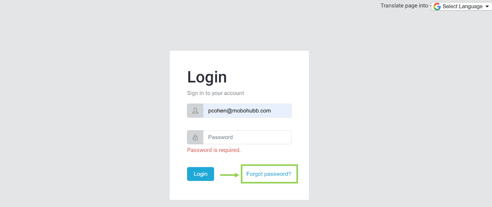 If you are planning to Login in the platform, you can find the option to fill you email address and password that you register with mobohubb, bellow this info, you can click in the bottom “forgot password.