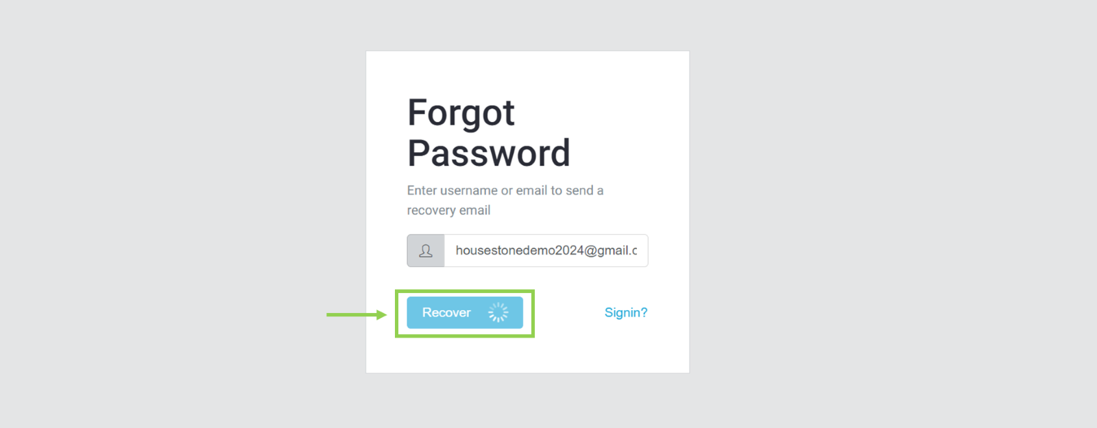 Once you click in “Recover password” atomically the platform will send an email to the listed account owner.